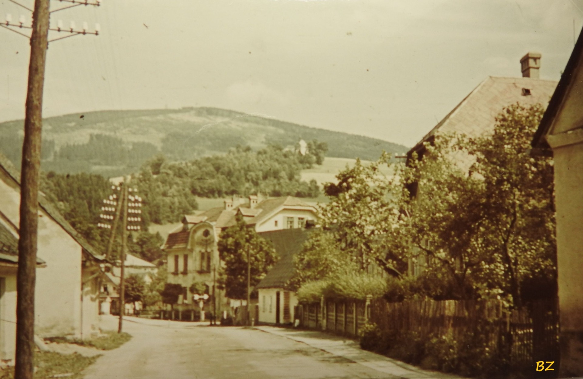 Pozn. Fotografie zachycuje Nádražní ulici s čp.302 ve Zlatých Horách v roce 1937 (převzato z profilu "Badatel Zlatohorský" a "Zapomenuté Zlaté Hory a Zlatohorsko").